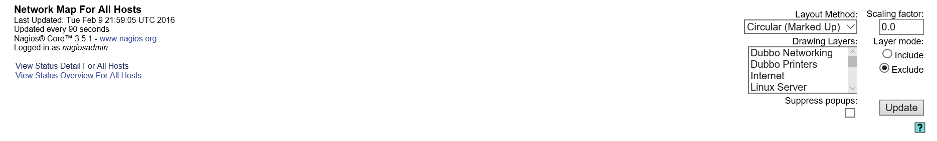 My issue I am currently having is that I am unable to only display the statusmap how I would like. Firstly when I browse to statusmap.cgi it shows the statusmap without the left hand menu which is good but it still shows some information above the map.