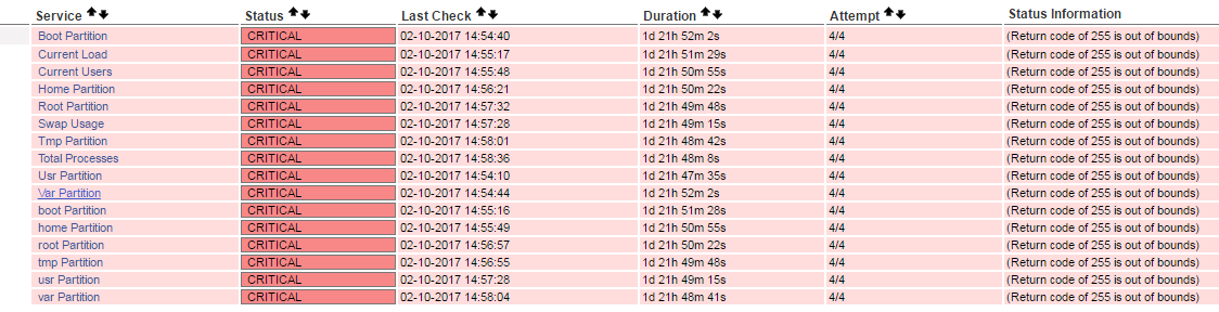 i have attached the nagios screenshot and i getting 255 bounds and as shown in error message