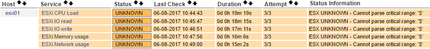 ESX UNKNOWN - Cannot parse critical range: '$'