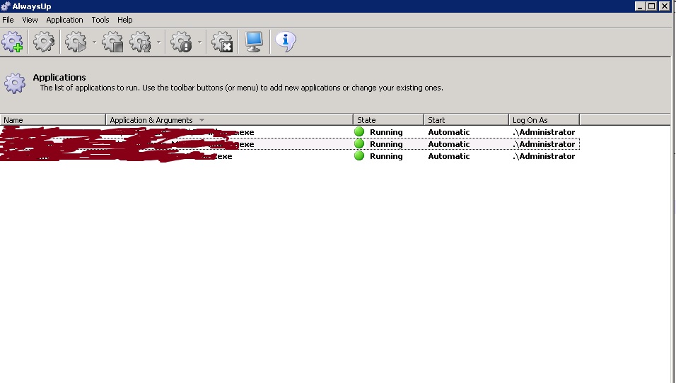 (i have attached pic) now i want to know how can monitor state of applications that has been added to AlwaysUp for example in pic that attached can see 3 application has been added and their state is Running