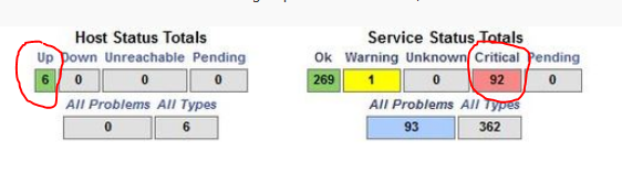 Probably not all 92 "Critical" services are members of your service group, but I bet ALL of these services belong to the 6 "UP" hosts, and ALL of them are in "Critical" state.