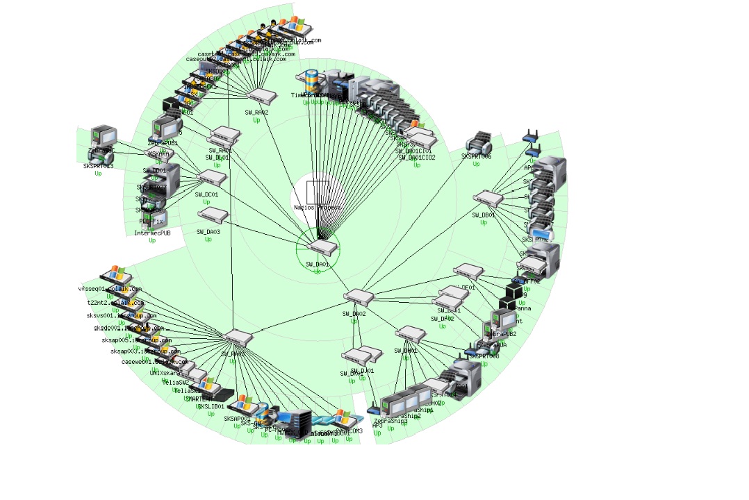 After some manual configuration this is our current look of Nagios Map. However I would like the hosts to have some spaceing between them automatically. As you can see the names of the hosts can not be read. I have unsucessfully tried some solutions (I get errors, or I dont know how to do it), see below some of my problems. Best would be to use the patch automatically, but nagiosmap.pl sounds like a almost ok solution.