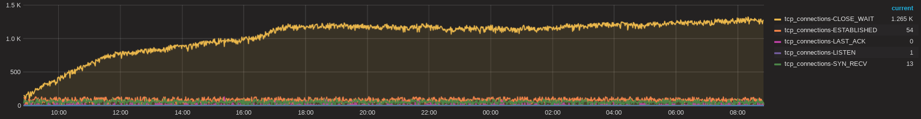 Unfortunatelly yes. I not have any idea, what is wrong, what is reason, why is opened too many CLOSE_WAIT connects and what attempt next.