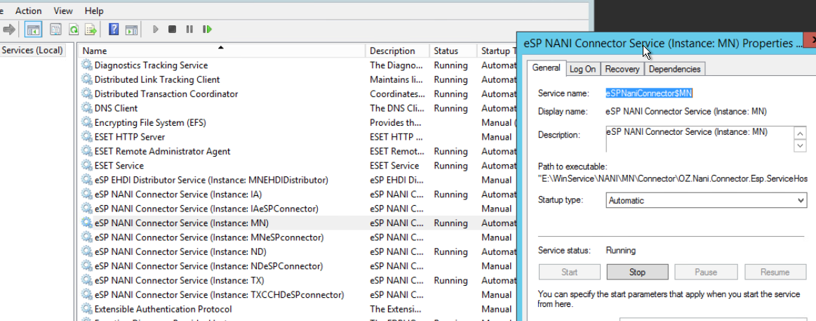 ./check_nt -v SERVICESTATE-d SHOWALL -l eSPNaniConnector\$MNeSPConnector -p 12489