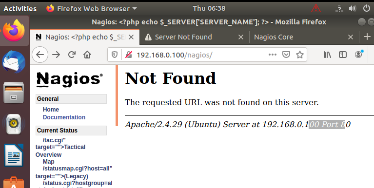 I just installed nagios on my ubuntu server and its showing but its not showing everything im getting the menu and the home page but im getting this not found error any help would be appreicated