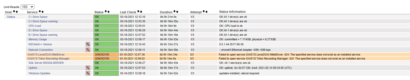 Trying to add services to monitor as shown :D Getting the following error : Failed to open service OAISYS Level2OAI MitelDriver: 424: The specified service does not exist as an installed service. Thanks for your help and feel free to chime in on the screenshot.