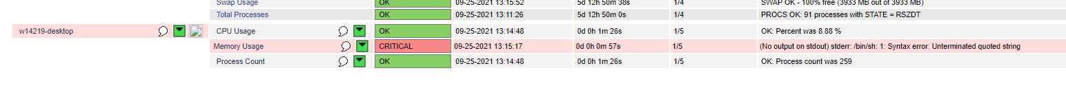I am running a new instance of Nagios on Ubuntu and am getting the following error when I "reschedule the next check of this service" for a Windows NCPA agent. However, if the Nagios server waits 5 minutes, all the errors are cleared. Then, between between the all cleared errors and 5 minutes, the error comes back, then the cycle starts over.