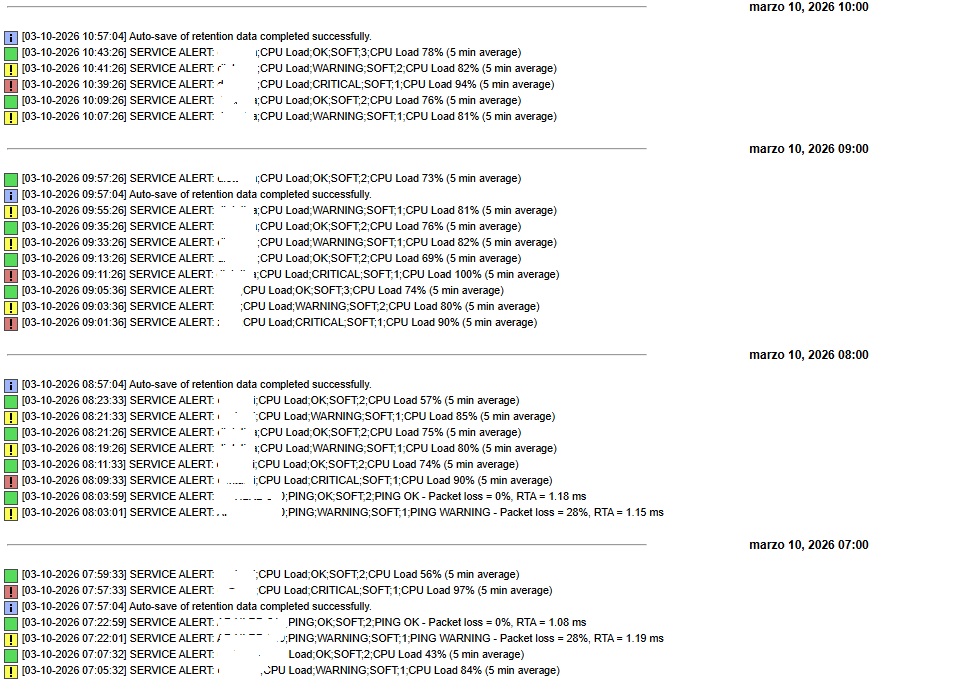 First of all, thank you. We have Nagios Core 4.0.8 and every day we get different alerts: HostCPUUsageAlarm, PROBLEM Service Alert, PROBLEM Service Alert: ZEUS/CPU Load is CRITICAL from different servers, and we don't know why. Any suggestions?