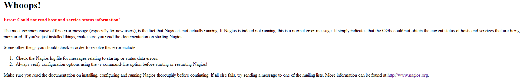 Until I went to look at the Nagios web interface. it looked like the Nagios service was not running (see attachmet whoops.png)