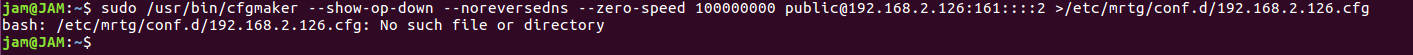 cfgmaker --global 'WorkDir: /var/www/html/mrtg' --global 'Options[_]: bits,growright' --output /etc/httpd/conf/mrtg.cfg [email protected]
