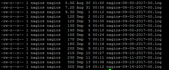 When i check database tables in "/var/lib/mysql/nagios" the "nagios_logentries.MYD" is taking 117GB, attaching the screen shot of files that taking more space and Does this making it freeze frequently and its happening more often when we add anything new to cfg files and do "Service nagios reload" than Restart.