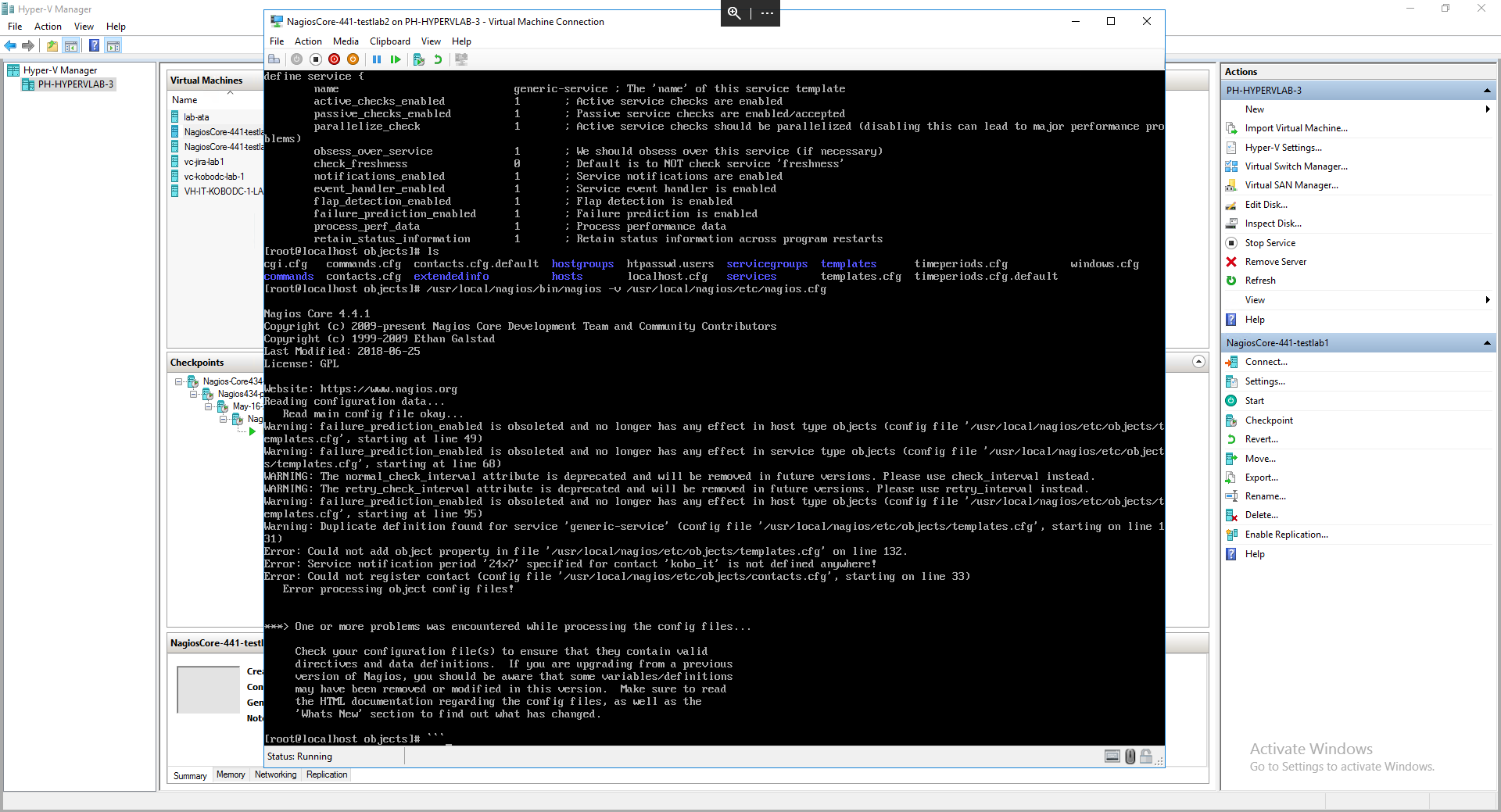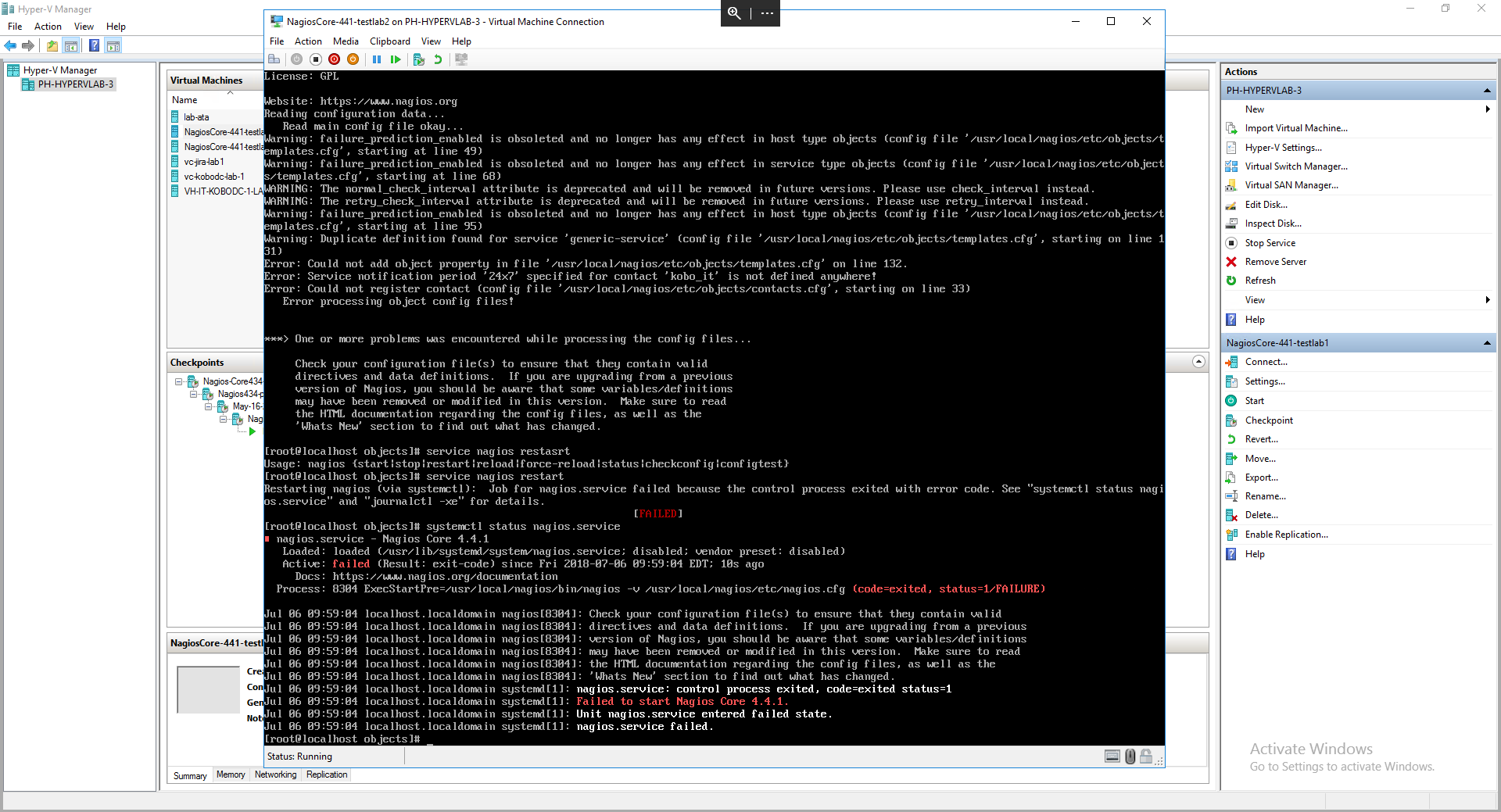 2. After the upgrade on my Ubuntu 16.04 VM from 4.3.4 to 4.4.1 i'm no longer able to run the nagios.service. I have restarted the services, VM and ran latest updates. I continue to see the error in my attached screenshot. Please HELP!