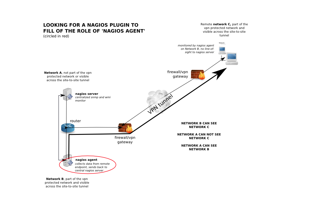 - I have a nagios server on another network which can see the first server but has no line-of-sight to the webserver