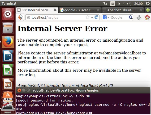 root@nagios-VirtualBox: /home/nagios /Nagios /nagios-plugins-2.0#service apache2 restart