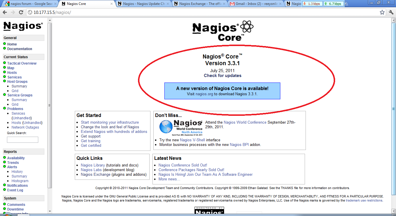 Nagios version on home page