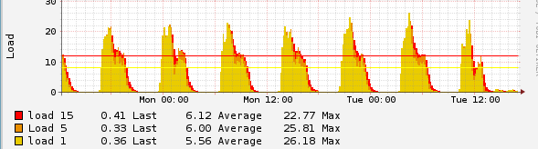 I sat and did some analysis last week when one of the boxes was under a load peak and my findings were essentially "not a great deal". They're not iobound, nor are they obviously CPU bound. I wondered if the load was just being skewed heavily due to the sheer volume of checks taking place, but if that was the case you would expect a steadier load pattern over time rather than one that settles back down to 0 as virtually all of these checks run on the same default schedule.