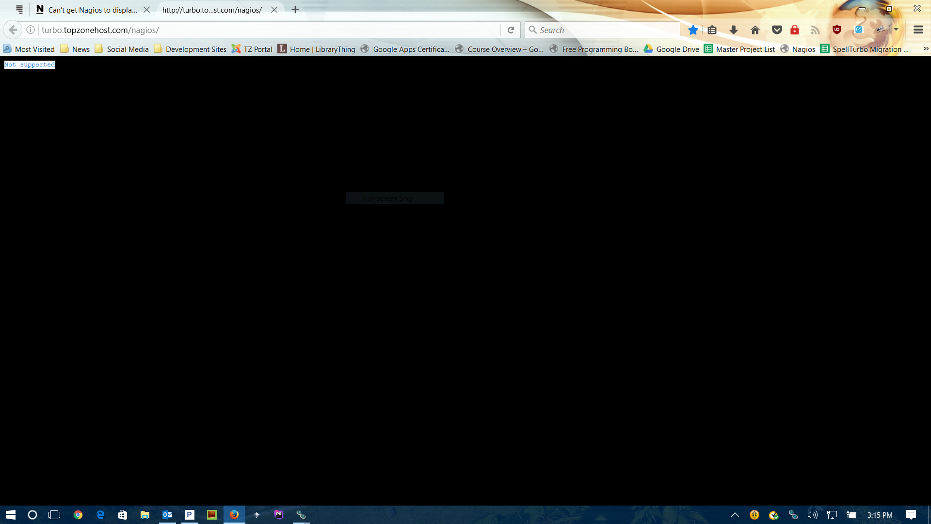 nagios application in the browser and log in, I get a black screen. If, however, you "highlight" the words, I see "Not supported" displayed.