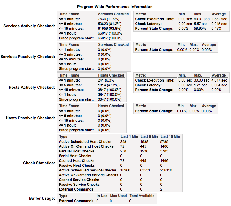 Can you go to the Performance Info menu in the Nagios GUI, screen capture that and post it here?