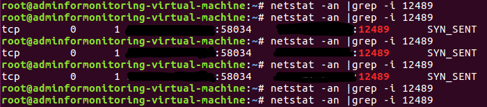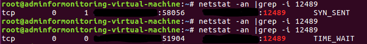 When i do the command on my VM i got this, i don't know why i got port 42682 for my VM. The port 12489 is for my server that i want to monitor :