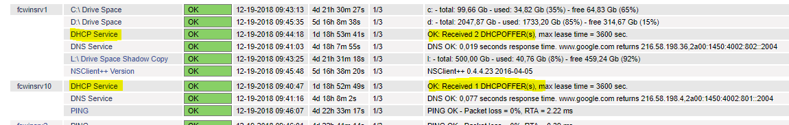 [1545054911] SERVICE ALERT: fcwinsrv10;DHCP Service;OK;SOFT;2;OK: Received 2 DHCPOFFER(s), max lease time = 3600 sec.