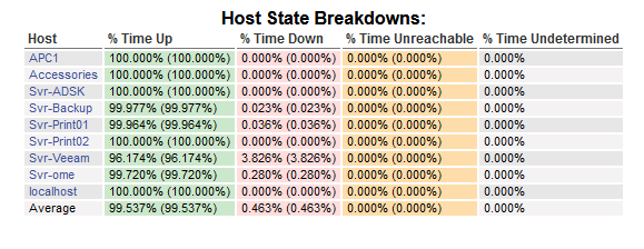 Ya the one I was looking at was the % Time Up and I did a test last night and turned off the Nagios service and then turned it back on this morning and you are right it did not seem to affect it. I absolutely did not think about the performance data though. So I am thinking at first just disabling the service to move off our old system and start to use Nagios full time but then just work on getting the Plugin to work. This host state Breakdowns is what I was looking to see if it affected the % Time up.