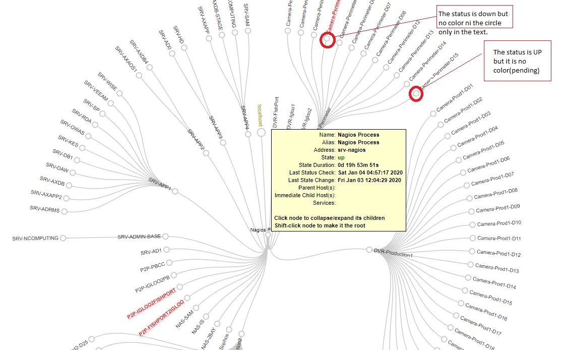 You can see my attached file. My map have a four downs(red text) my concern is no color on the circles it means the status is pending but it all UP by the way.