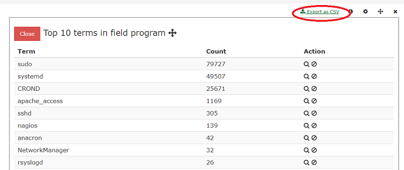 You will get a listing of the top terms based on count and then you can also download a csv file the whole query sorted by program filed.