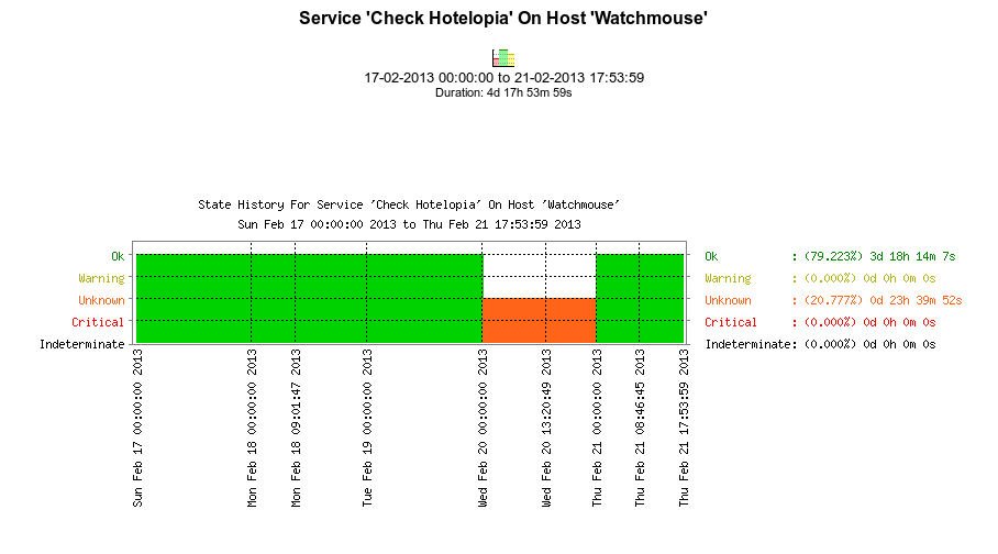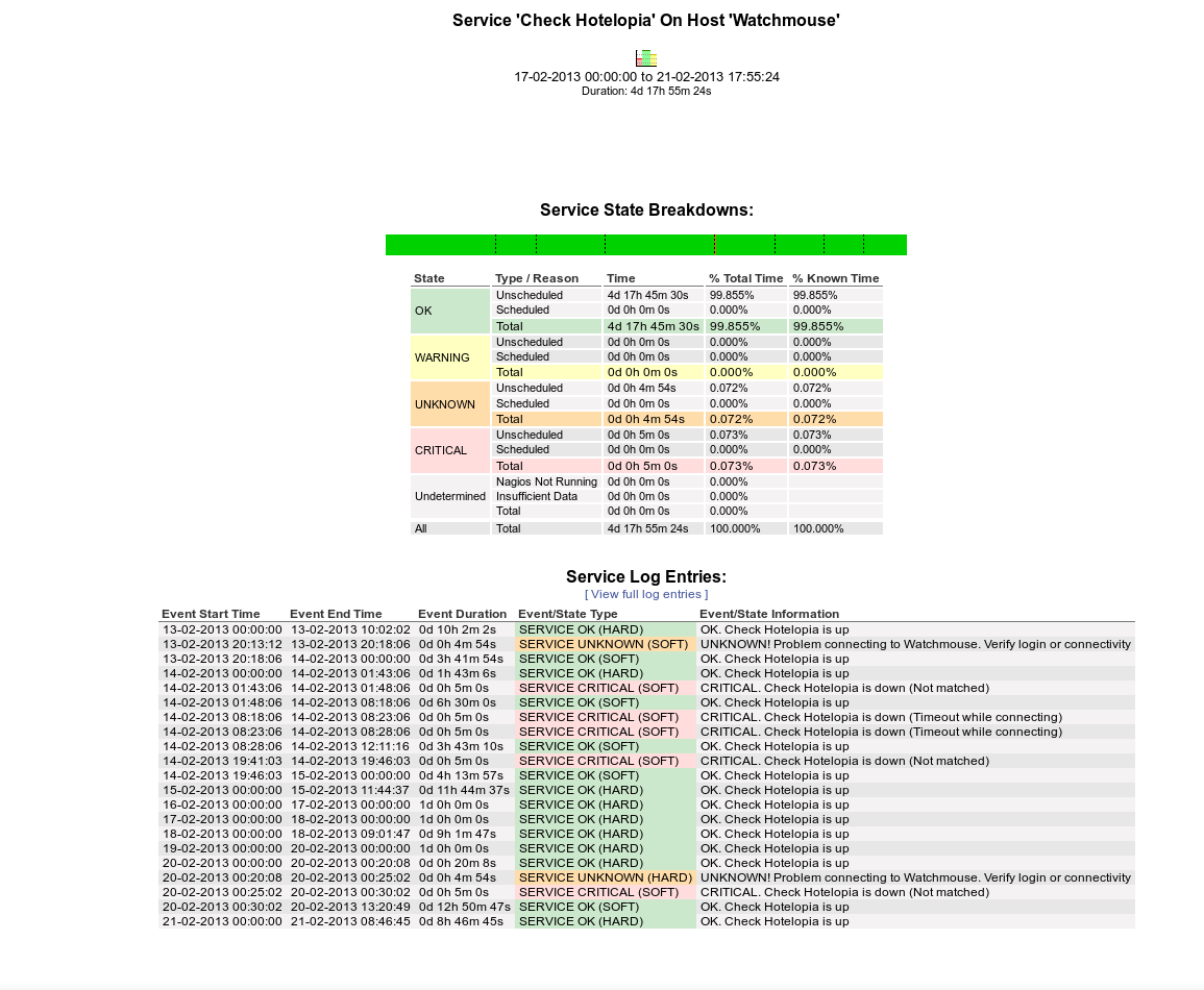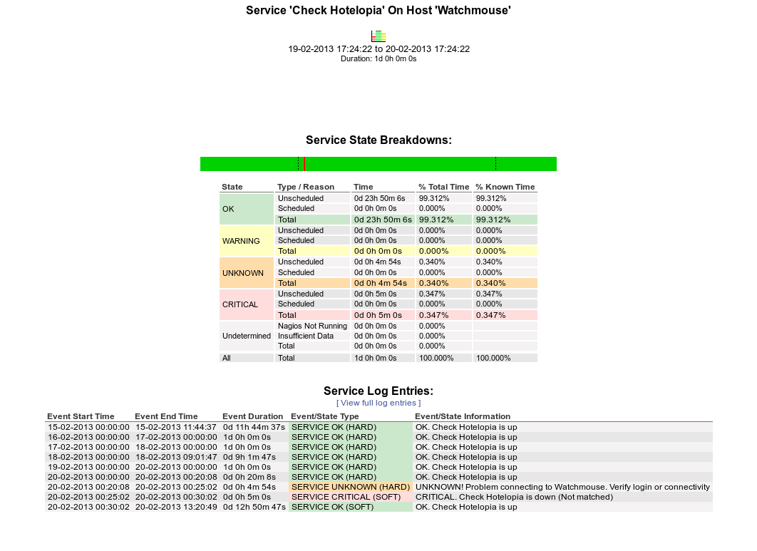 Is suspect that if you look at the Trend Report, the service recovers at 00:00, but all day the check has been checked every 5 minutes checking and the result of all checks has been OK, only one CRITICAL at 00:20 +/-