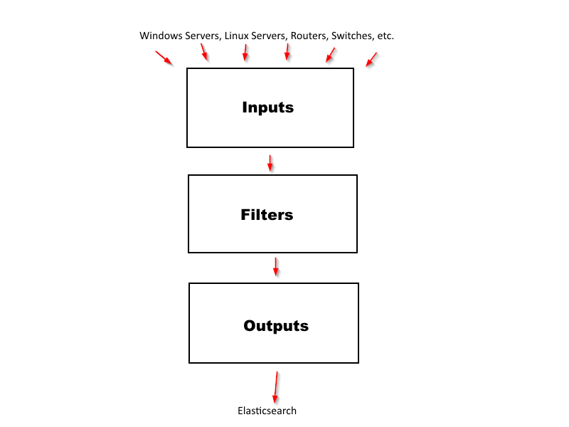 Logstash is the most complex component in Nagios Log Server that an administrator will have to deal with. It is imperative that a good understanding of logstash is developed. The logstash agent is a processing pipeline with 3 stages: inputs -> filters -> outputs. Inputs receive incoming logs, and pass those logs to the filter chain, filters modify them, outputs ship them elsewhere - in our case, to the opensearch database.